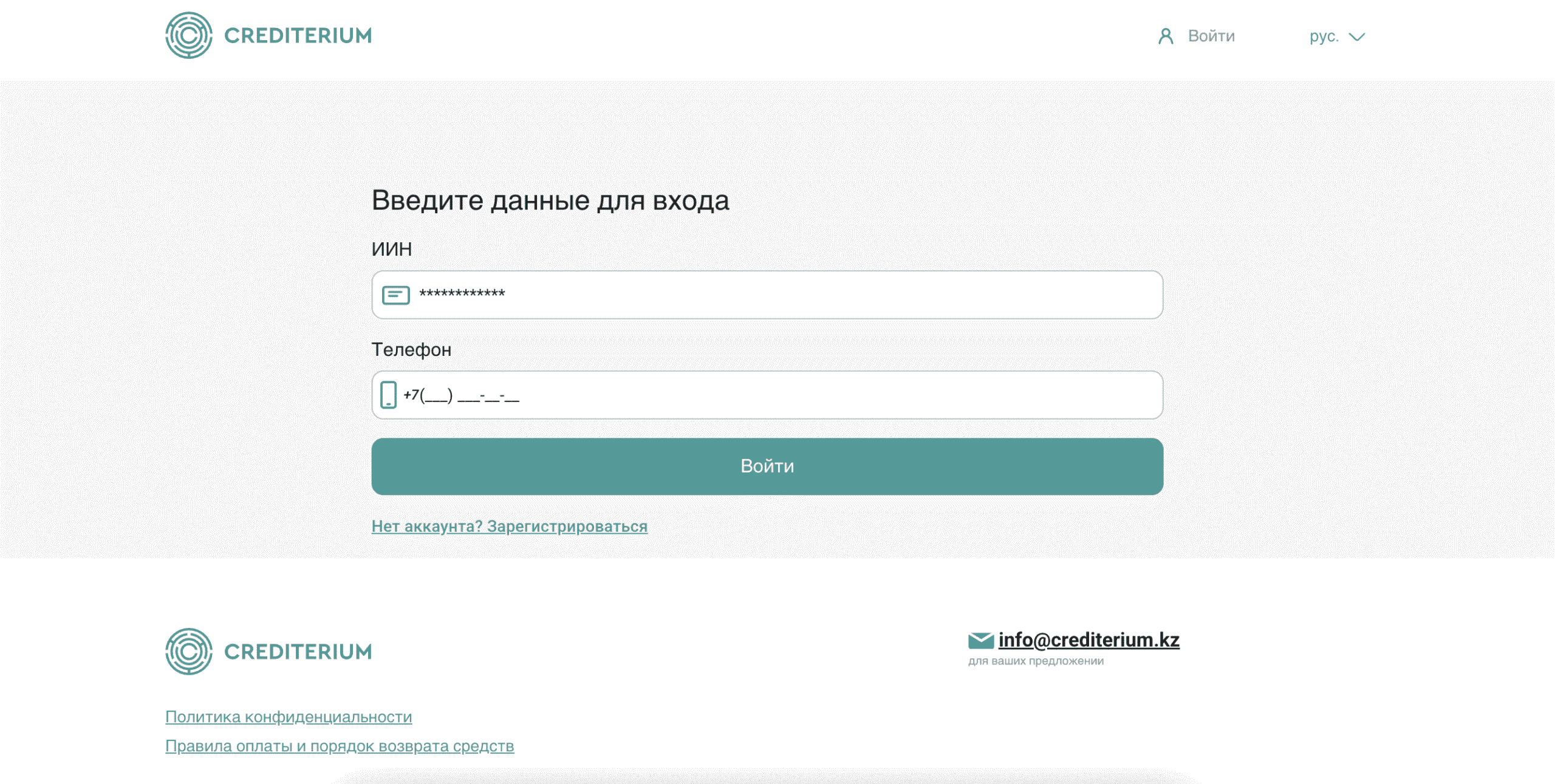 Crediterium — онлайн-платформа для управления кредитами, рефинансирования и улучшения кредитной истории. Сервис не является официальным кредитным бюро или банковским учреждением, а лишь помогает с выбором подходящими конкретно под клиента МФО или продуктами.