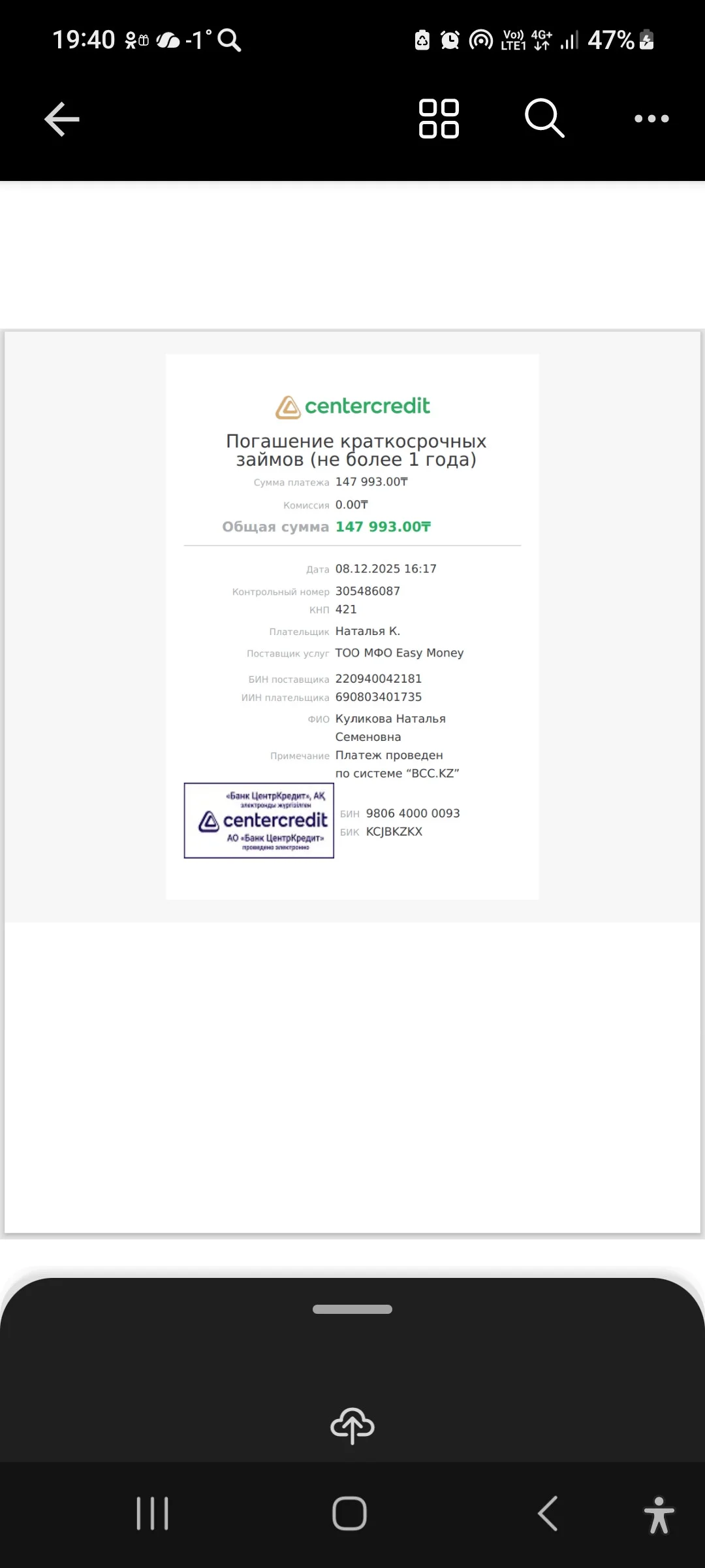 Вы можете попробовать обратиться в организацию Easy Money напрямую. Вот их контакты: https://bank.kz/mfo/easy-money/.