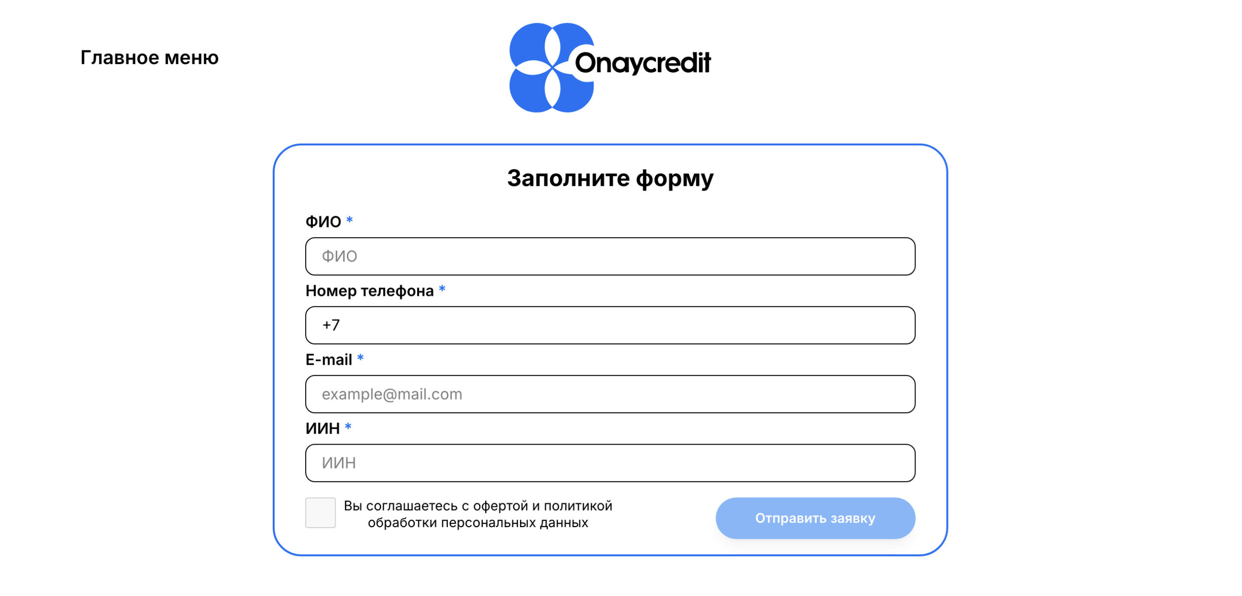 Onaycredit работает только с совершеннолетними клиентами и не требует справок о доходах или поручителей. Сервис может одобрить заявку даже с плохой кредитной историей, все решения принимаются индивидуально. От клиента нужны только удостоверение личности и ИИН, а также действующая банковская карта или счет, активный номер телефона и почта.