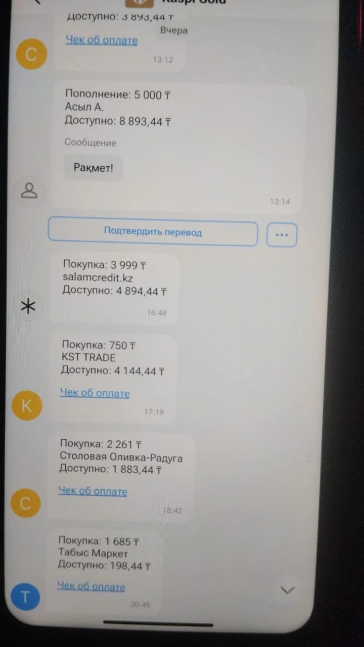 Мне на жали микрокредит хотя они списали деньги от моего kaspi.kz 4999 тг ито ночью 23:06 и это думаю не рабочее время и потом я закрыл онлайн транзакцию и даже при этом хотят каждый ден списать деньги Покупка: 4 999 ₸